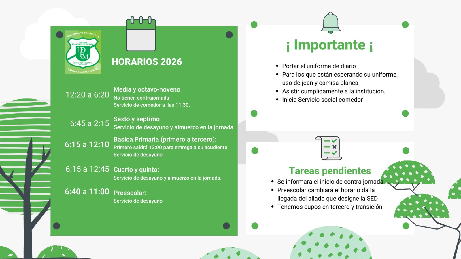 Estimados padres, madres de familia, acudientes y estudiantes JORNADAS TARDE Y ÚNICA,