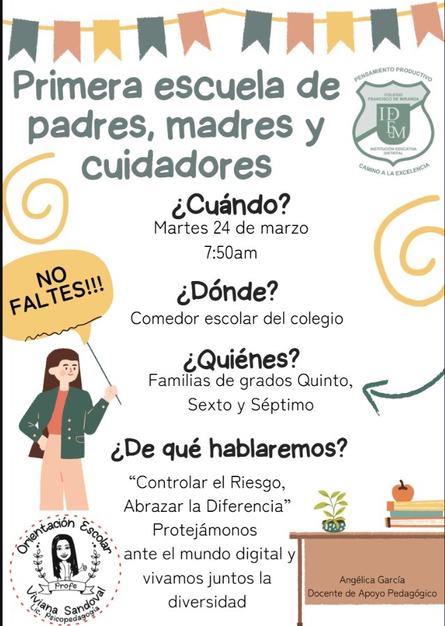 Estimados Padres de familia nos complace invitarlos a la Primera Escuela de Padres y Madres, en éste espacio se darán herramientas para orientar a las familias en el proceso de acompañamiento y formación de sus hij@s.